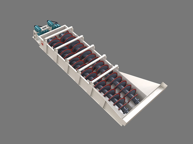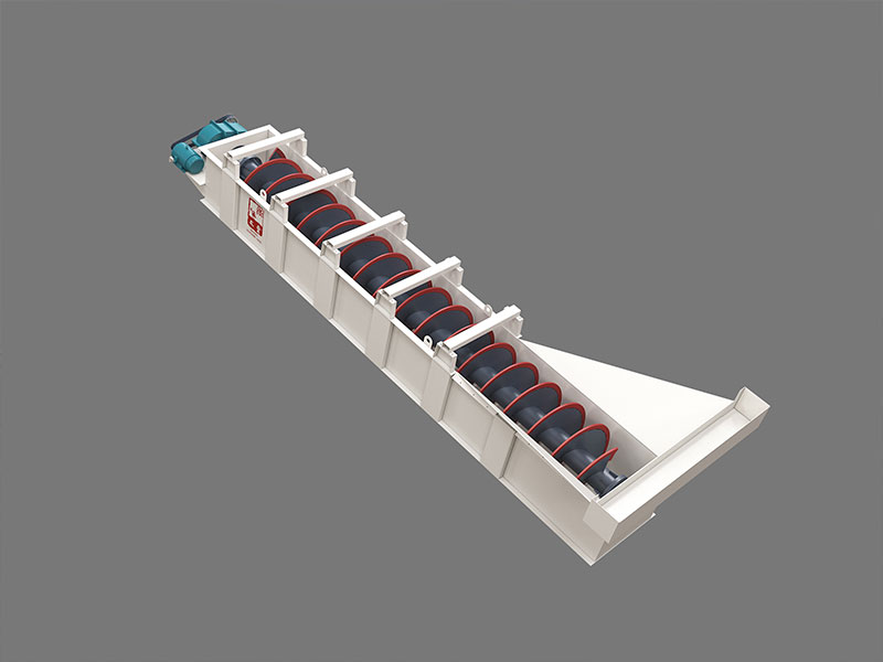 LX砂石洗選機(jī)系中螺旋洗砂機(jī)利用物料不同粒度和密度的顆粒在流體中具有不同的沉降速度的特性——粒度細(xì)、密度小的顆粒沉降速度慢;而粒度大、密度大的顆粒沉降速度快,將粉塵和雜質(zhì)與砂分離開(kāi)來(lái)。并在螺旋片的均勻攪動(dòng)下,達(dá)到濾水去雜、提升輸送的目的。